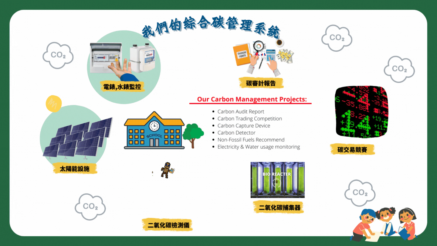 Educational tools for students, such as carbon footprint calculator, solar LED lights, solar energy introduction talk, solar panel demonstration